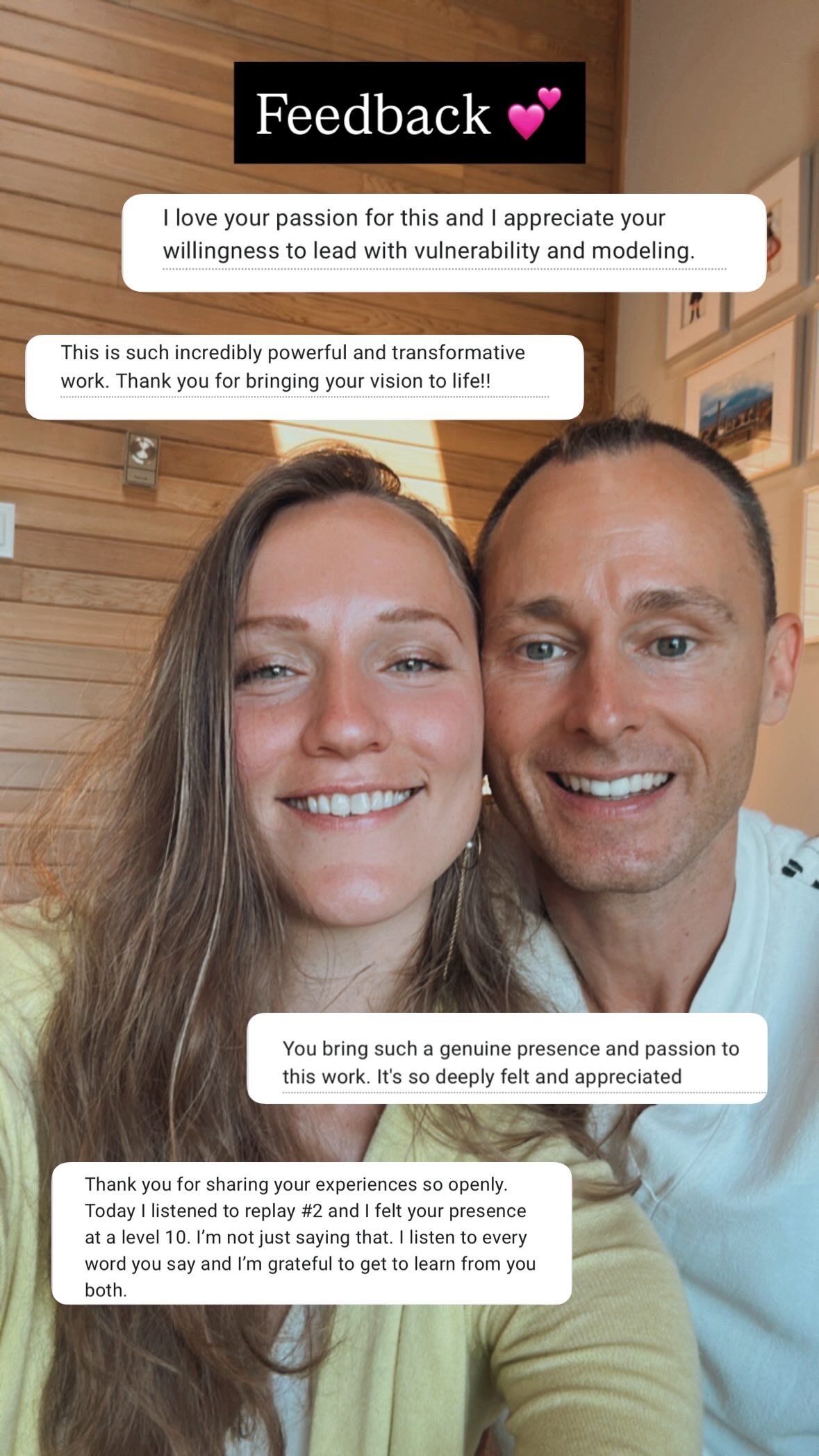 This isn’t therapy. It’s embodied practice, presence, and truth-telling designed to ignite connection and passion that lasts. See a Video Testimonial from a couple of almost 14 years who have tried check-in practice with a counsellor before and only had a breakthrough with our practice.